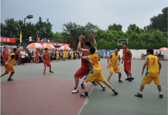 日、13 日在紫玉山庄篮球场举行的小组赛和半决赛。在场外拉拉队与观众们的