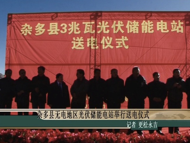 2013年11月15日,青海省玉树州杂多县无电地区独立光伏电站正式对外送电,这标志着该项目顺利竣工。项目竣工庆典仪式在青海省玉树藏族自治州杂多县项目基地举行,玉树州发改委巴桑副主任、能源科索南央霈科长、州科技局才局长、县委副书记县长才旦周、县委常委副县长永红、副县长何歆、副县长才公、县人大主任尕玛朋措、县政协主席白多杰、县发改局扎西朋措局长,以及县各局领导、乡镇政府领导参加了仪式,青海省科学技术厅、玉树州人民政府、天津蓝天电源公司、北京索英电气有限公司发贺电祝贺项目竣工。