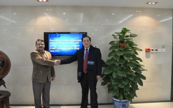 2013年3月7日,玻利维亚大使吉列尔莫·查卢普·连多先生参观了中能华辰集团北京总部,王建伟总裁陪同参观并进行了商务洽谈,双方就两国之间的贸易往来、新能源产业合作等达成了共识。