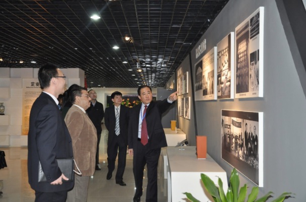 大使参观一层展厅,详细了解了集团历史及产品,对太阳能与民用建筑的结合非常感兴趣