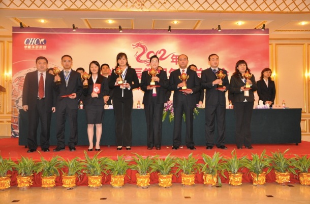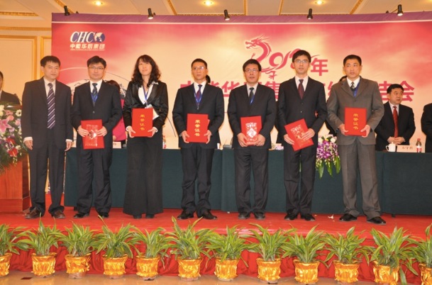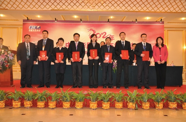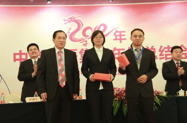 任满军财务总监宣读了《关于表彰2012年度集团先进单位和先进个人的决定》,本次共计表彰:14位先进工作者、7位优秀党员、3个先进单位、7个先进部室、3个总裁特别奖单位及2位总裁特别奖员工。