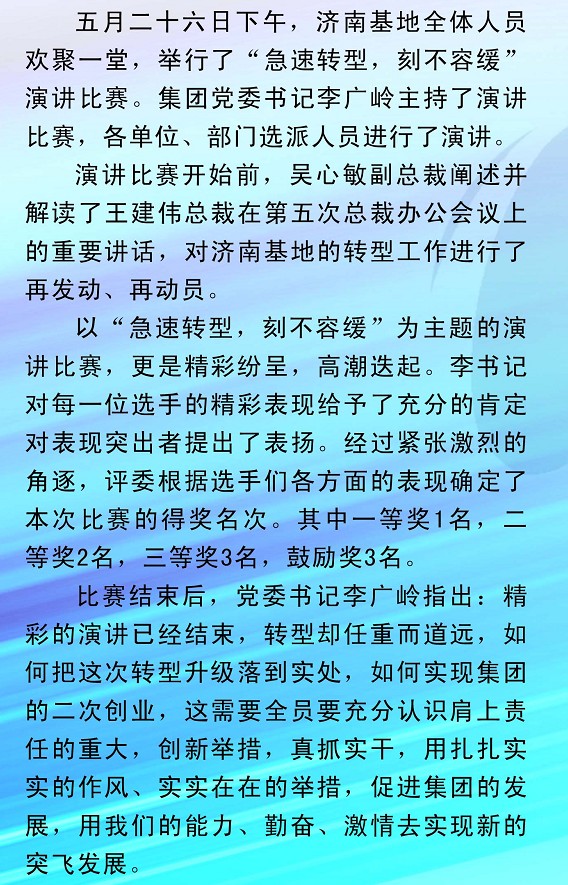 济南基地举行“急速转型,刻不容缓”演讲比赛