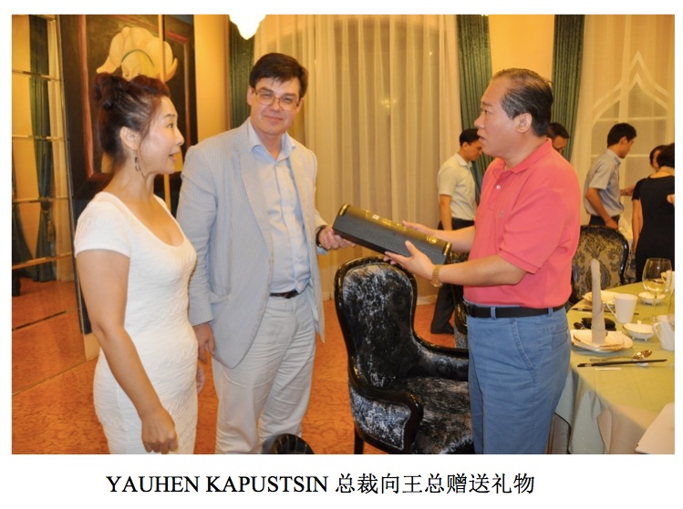在欢迎晚宴上,王建伟总裁和 YAUHEN KAPUSTSIN 总裁共同