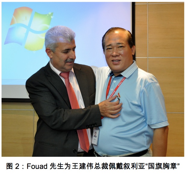 王建伟总裁代表集团全体员工欢迎 Fouad 先生的来访,并着重