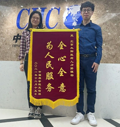 12月15日上午,中国科学院退休老同志王佑祥专程将一面写着“全心全意为人民服务”的锦旗送到了公司人力资源部纪哲康经理手中,对人力资源部尽职尽责、热情周到的服务表示了诚挚感谢和高度赞扬。
