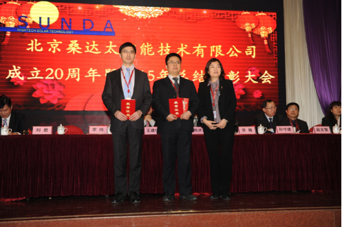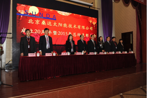 2015年12月31日,北京桑达太阳能技术有限公司成立20周年暨2015年总结表彰大会在在三河市宏盛农业观光生态园金色大厅举行隆重举行,近300位员工代表参加了会议。